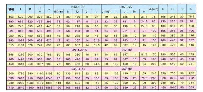 平行軸系列齒輪箱的公稱輸入功率P。(表9—20)按載荷平穩(wěn),每天工作時(shí)間小于或等于10h,每小時(shí)啟動(dòng)不超過5次.允許啟動(dòng)轉(zhuǎn)矩為工作轉(zhuǎn)矩的2倍。單向運(yùn)轉(zhuǎn),單對(duì)齒輪的接觸強(qiáng)度安全系數(shù)約為1,失效概率小于或等于1%等條件計(jì)算確定的,,齒輪箱雙向運(yùn)轉(zhuǎn)時(shí).需視情況將PA乘上0.8—1.0的系數(shù), 當(dāng)反向載荷大,換向頻繁、選用的系數(shù)K。較低時(shí).系數(shù)取較小值.反之取較大值,、